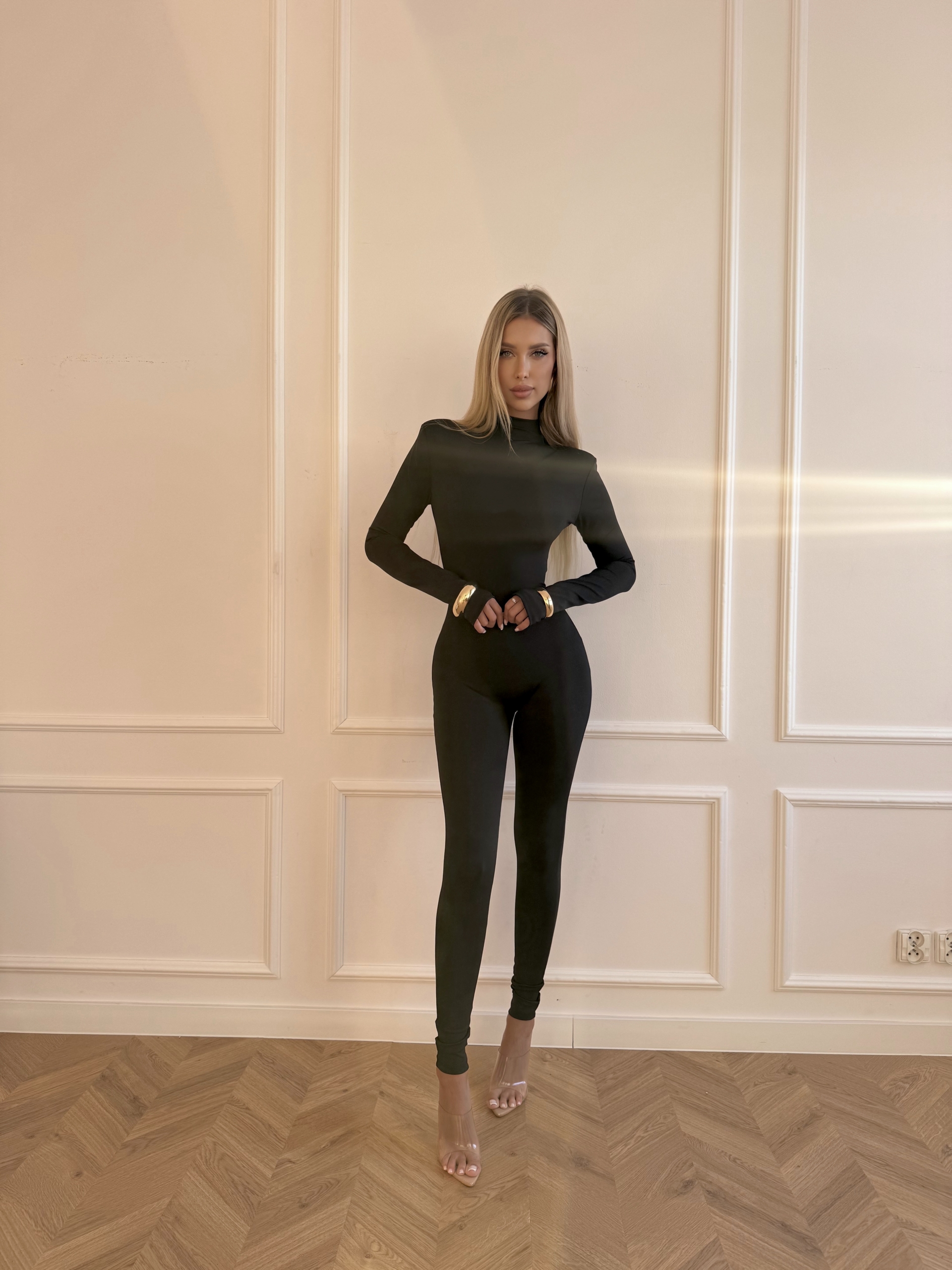 Albi Obcisły kombinezon, który podkreśla sylwetkę i robi efekt wow Dopasowane nogawki, subtelne marszczenie na pupie, poduszki w ramionach i mały golfik tworzą perfekcyjne proporcje. Elastyczna tkanina zapewnia komfort i idealne dopasowanie. Idealny na wieczór, wyjście z przyjaciółmi lub stylowy dzień.