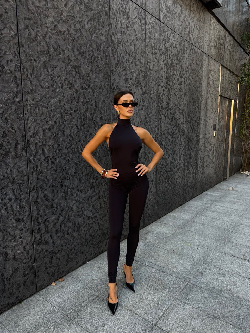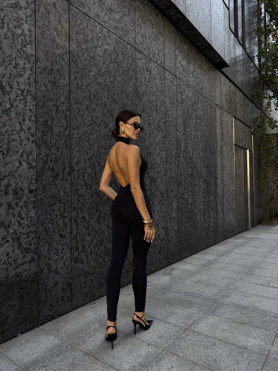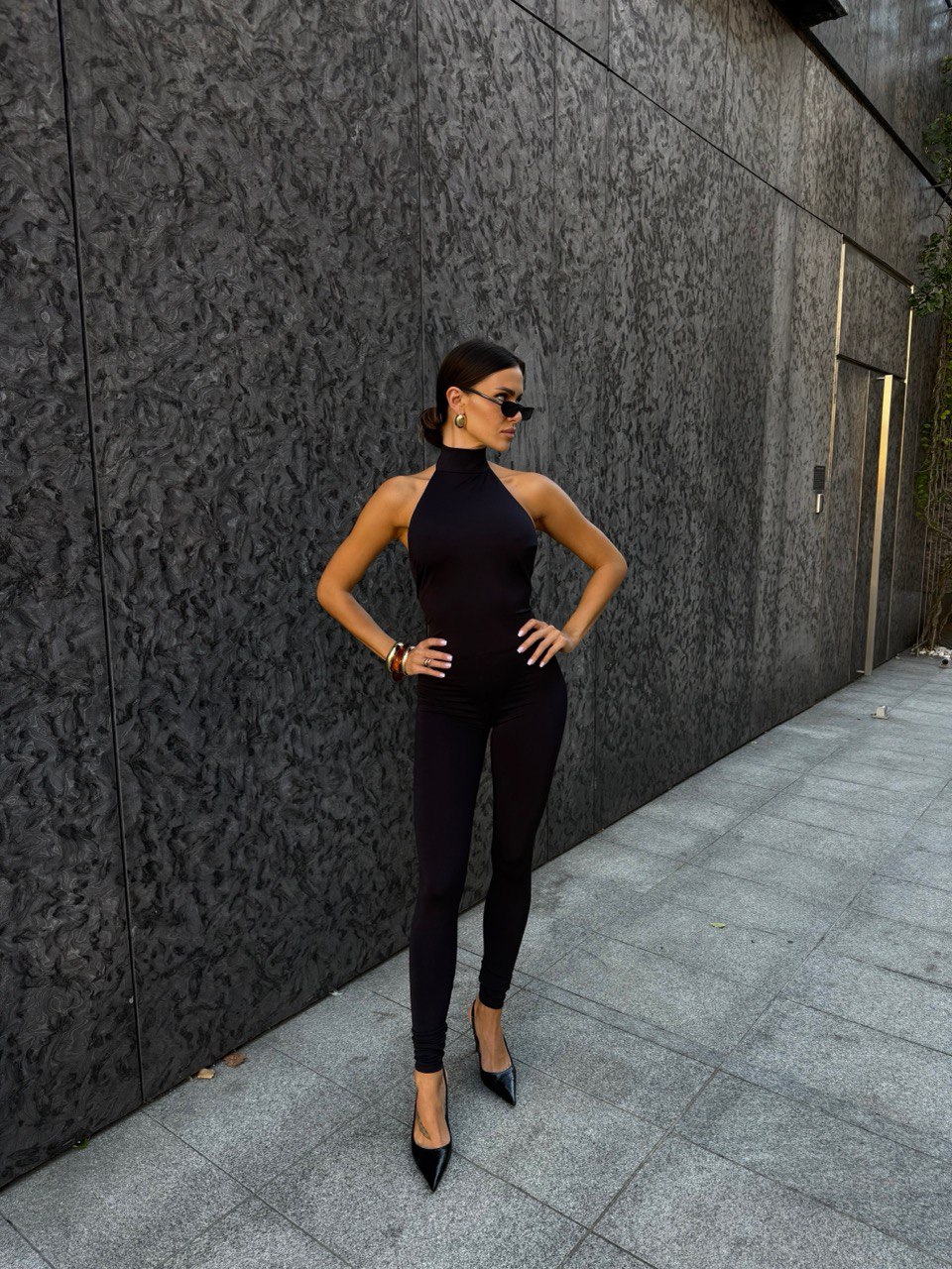 Zmysłowy dekolt na plecach i obcisłe nogawki tworzą ultrakobiecy look, a elastyczny materiał perfekcyjnie podkreśla sylwetkę. Idealny wybór na wieczorne wyjścia i wyjątkowe okazje.