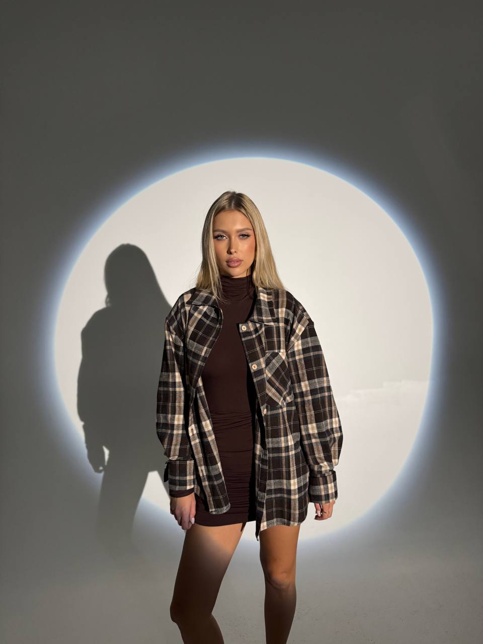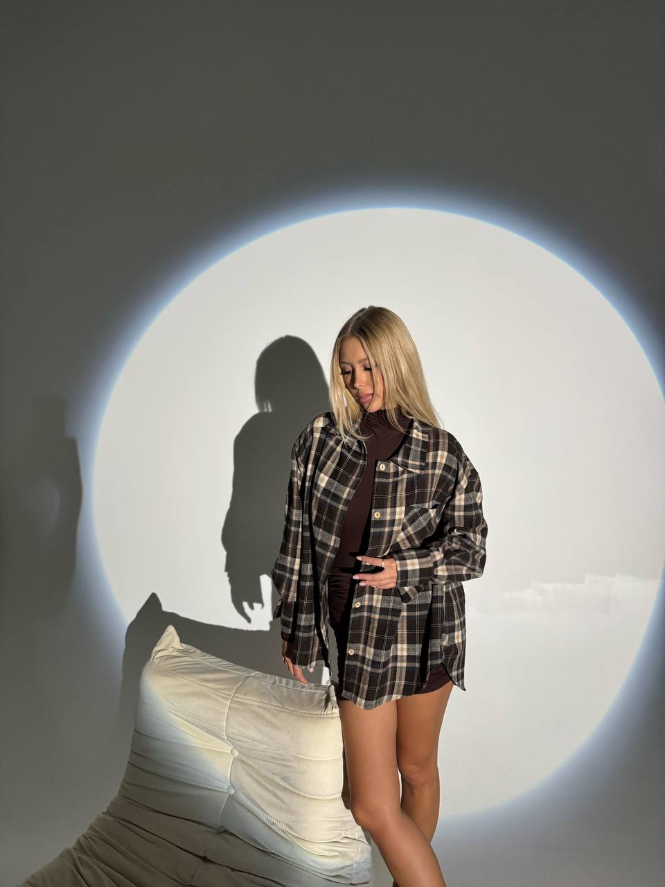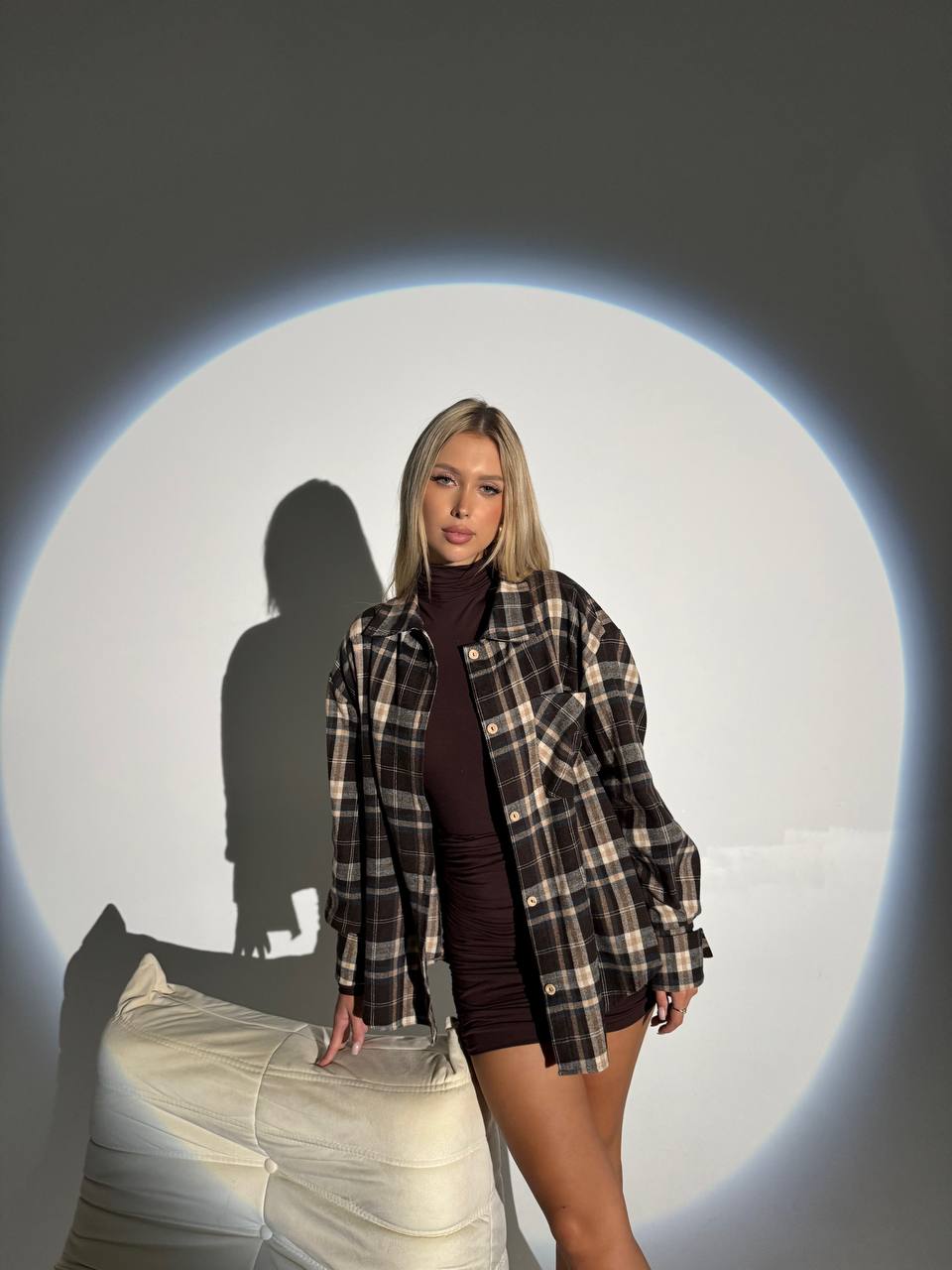 Oversize’owa koszula w odcieniach czekolady – idealna do luźnych, codziennych stylizacji. Świetnie wygląda narzucona na top i szerokie jeansy, tworząc nonszalancki, miejski look.