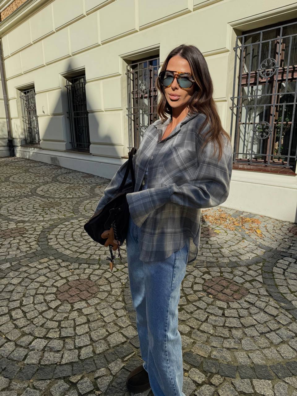 Oversize’owa koszula w odcieniach szarości – idealna do luźnych, codziennych stylizacji. Świetnie wygląda narzucona na top i szerokie jeansy, tworząc nonszalancki, miejski look.
